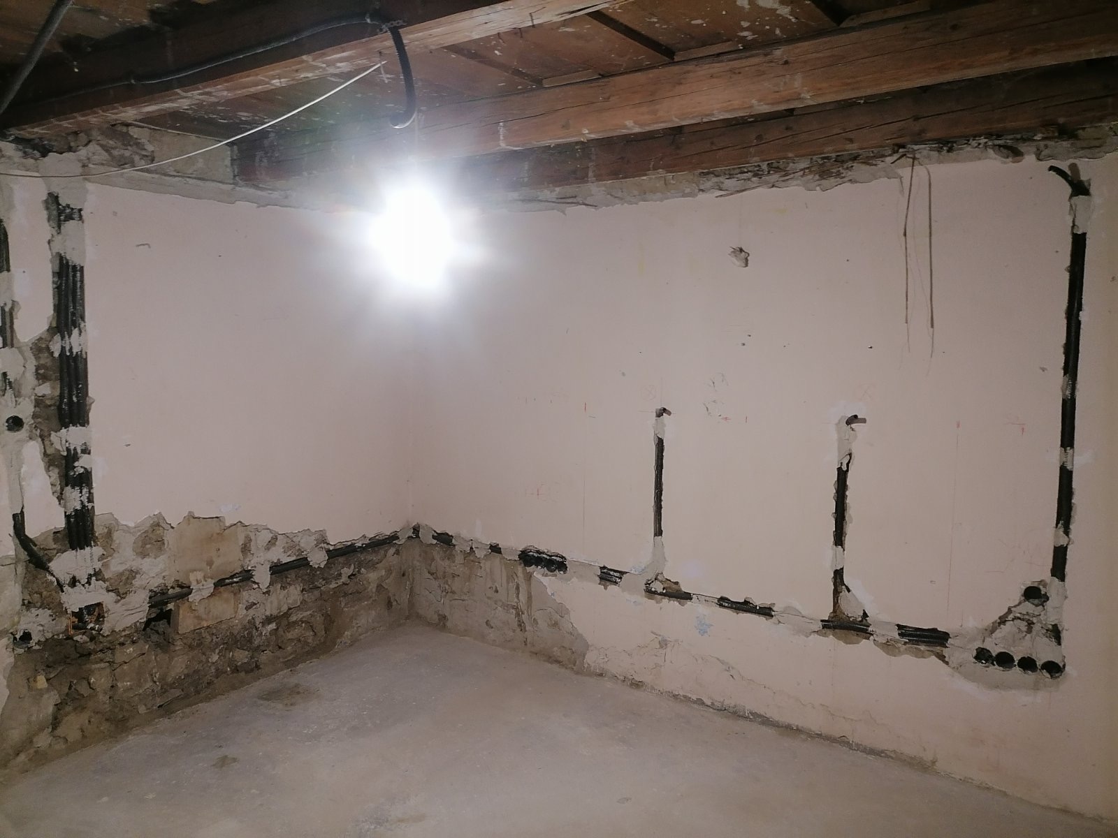 Erős és gyenge áramú kábelek kiépítése.